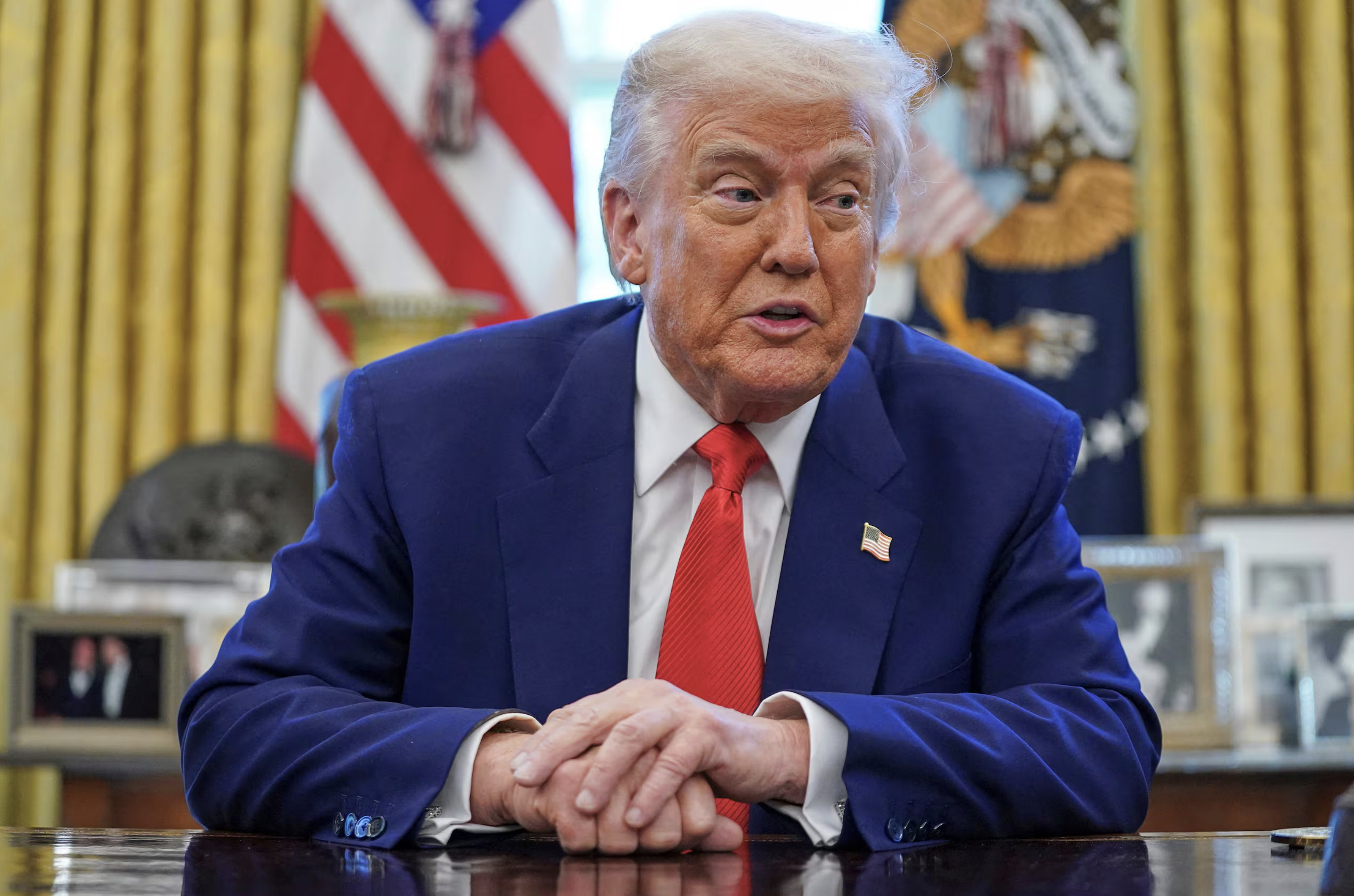 백악관 행정명령 서명식 도중, 트럼프는 기자의 질문에 답하며 이렇게 말했습니다.